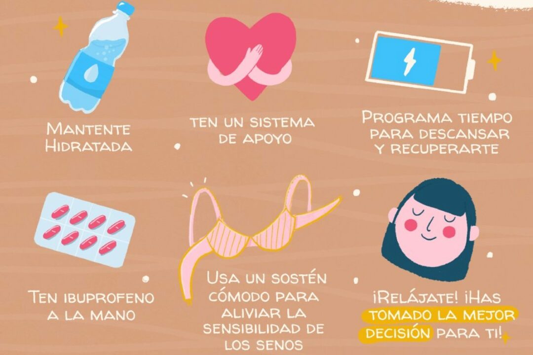 Para aliviar la incomodidad mamaria, se recomienda usar un sostén de soporte adecuado, aplicar compresas frías y evitar la estimulación de los pezones. En la mayoría de los casos, estos síntomas desaparecen conforme los niveles hormonales retornan a la normalidad.